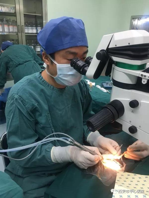 眼科副主任医师肖潇的手术日。2018年1月18日他像往常一样早上7:30已经换上白大褂,今天他要进行的是2例糖尿病患者硅油眼并