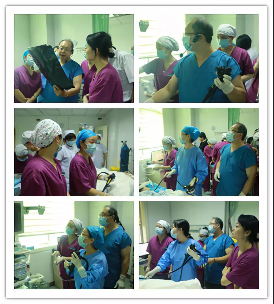 下午,培训班安排了食管胃脉曲张内镜下治疗的手术演示及手把手培训。在六合彩生肖麻醉科的全力配合下,李坪教授首先进行了2例高难度食管胃底静脉曲张精准治疗的手术演示,随后又指导学员对5例食管胃底静脉曲张患者在全麻下进行了内镜下治疗,李坪教授手把手教学讲解了ESVD的操作要点,手术的细节问题,首次分享了"地毯式搜索曲张静脉"等最新的手术技巧,用最接地气,最实际的的方法让学员们收益匪浅,7例手术患者均取得了良好的疗效,在一片掌声中结束了本次培训班。
