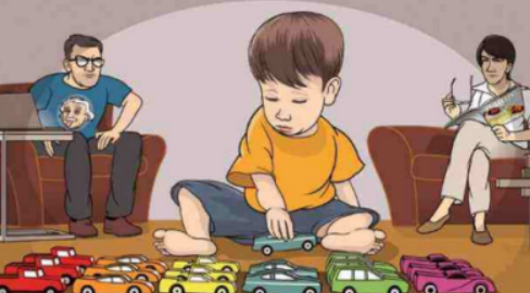 5、不当:这是指不恰当的物品使用及相关的感知觉异常。孤独症谱系障碍患儿从12月龄起可能会出现对于物品的不恰当使用,包括旋转、排列以及对物品的持续视觉探索。比如玩汽车时总喜欢用手转车轮,或是总是把小汽车排成一排,喜欢长时间注视旋转物品等。言语的不当也应该注意,表现为正常语言出现后言语的倒退,难以听懂、重复、无意义的语言。