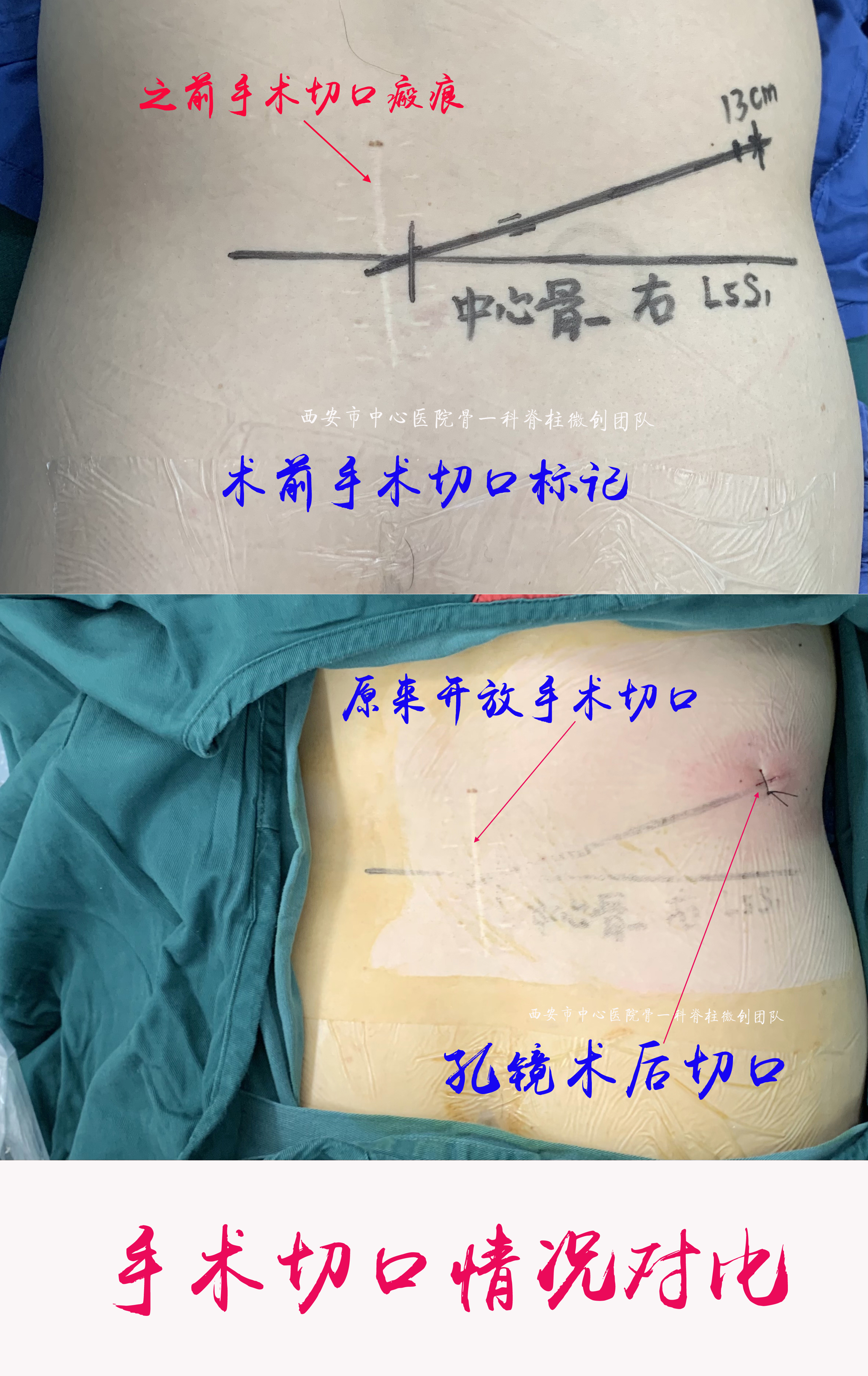 郭院长介绍:随着社会的发展,人们生活方式的变化,弯腰、负重、久坐等因素越来越多的占据人们的日常生活,腰椎疾病发病率越来越高,腰椎间盘突出症便是最常见的表现形式,以往传统的解决方式都是切开大手术,花费高创伤大,7年前小李第一次手术的时候,椎间孔镜技术还没有得到普及,便给小李实施了当时最微创的开窗摘髓核,这几年来我们骨一科脊柱微创团队快速成长稳步前进成立了脊柱微创中心,熟练掌握了最先进最全面的脊柱微创技术,可以用最小的创伤、最低的花费达到最满意的效果,并已经为成百上千的患者解除了病痛。对于小李来说,生活习惯中的弯腰、负重、久坐、受凉持续损伤着腰椎,导致了同一节段左右侧分别突出压迫神经,产生了同样的下肢抽痛麻木,而我们给他实施的两次手术,从全麻到局麻,从4厘米切口到0.7厘米切口,从卧床一周到当天下地,从术后的逐渐康复到快速康复,是可以真切感觉到医疗技术水平的进步的。六合彩生肖脊柱微创外科水平已经走到了陕西省内前沿,六合彩生肖 脊柱微创中心时刻准备着为广大患者解除腰腿疼痛疾病。