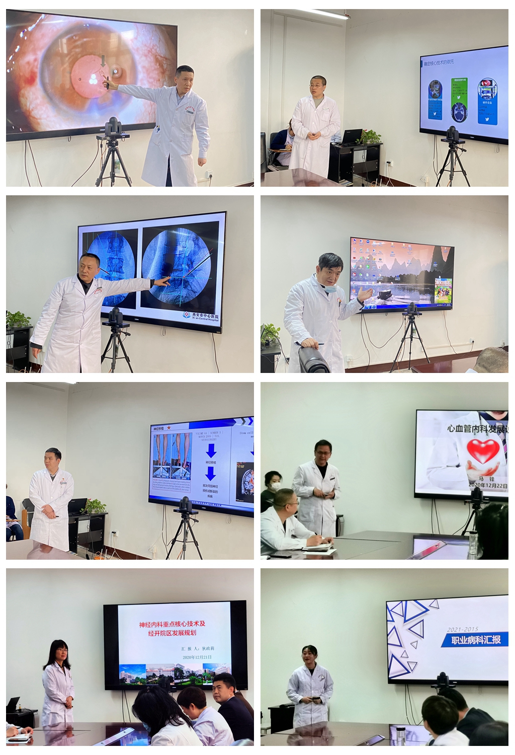 首先,各临床科主任依次从本科室核心技术、科研论文、经开院区发展规划等方面进行了详实的汇报,表示了自己开拓新思路,谋求新发展的决心。听取完大家的汇报后,刘超科长总结道,此次会议的圆满成功离不开各科室的积极配合,踊跃参与。希望各科室在以后的工作中能够相互协作,相互配合,实现医、教、研全面发展。