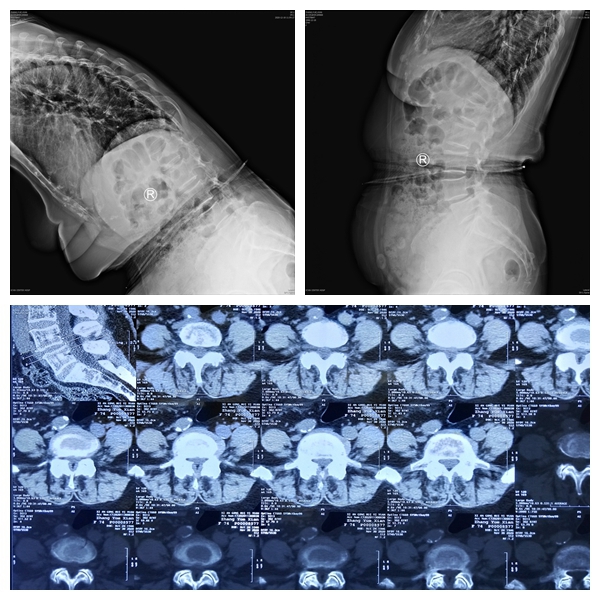 3D显微镜辅助扩张通道下腰椎管扩大减压滑脱复位椎间植骨融合内固定术(简称3D显微镜辅助MIS-TLIF)。术后患者恢复良好。