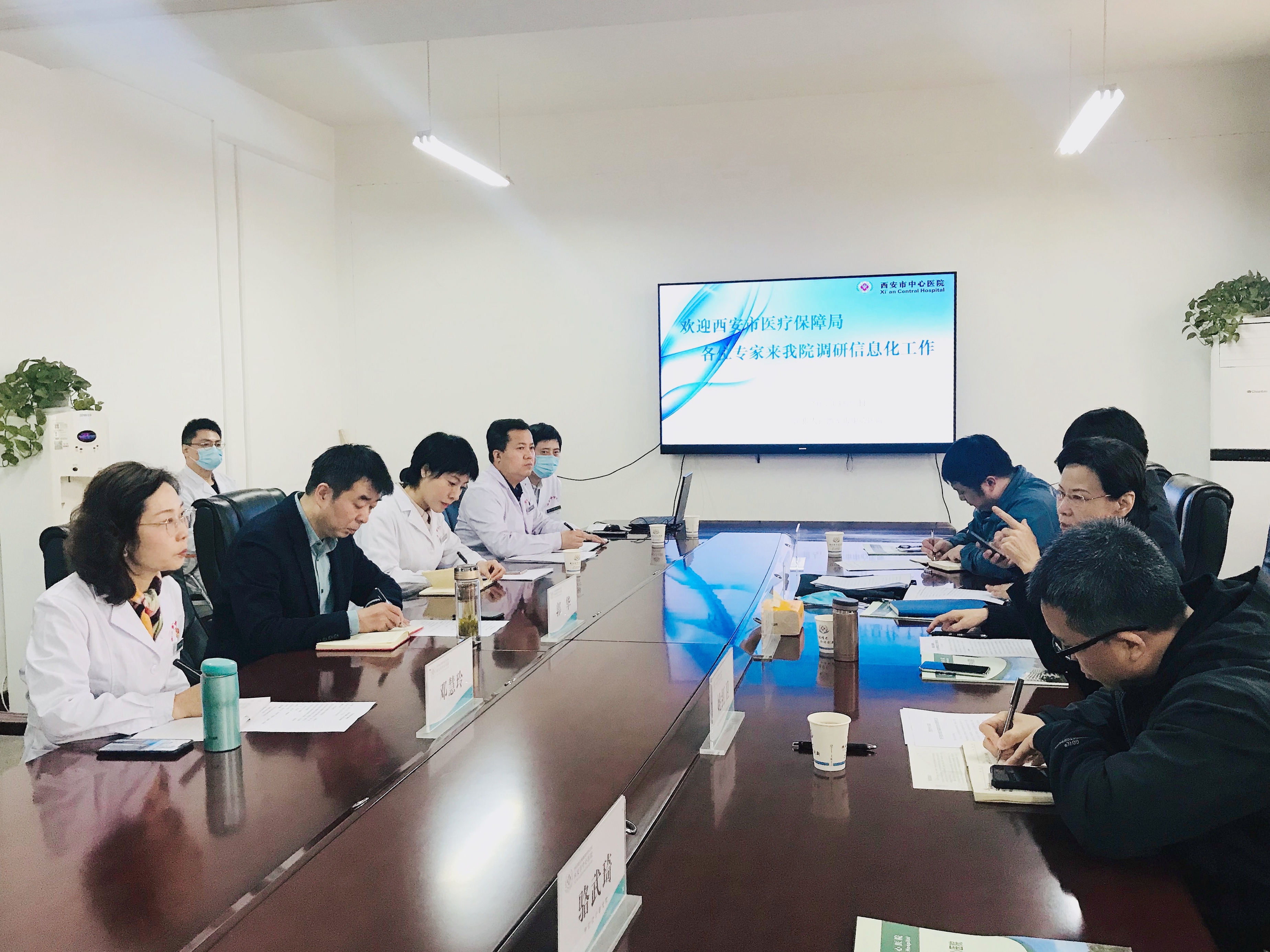 4月22日上午,西安市医疗保障局二级巡视员张群力、局法规与监督处处长梁韬、市医疗保障经办服务中心副主任姚红卫、市医疗保险基金管理中心负责人范文辉、华信设计研究院骆武琦等一行六人来六合彩生肖进行信息化调研。调研座谈会在行政办公楼三楼召开。六合彩生肖副院长郭华、副院长邓慧玲及医保办、信息中心、财务科、药剂科、质控科、设备科等相关科室参加本次调研会。