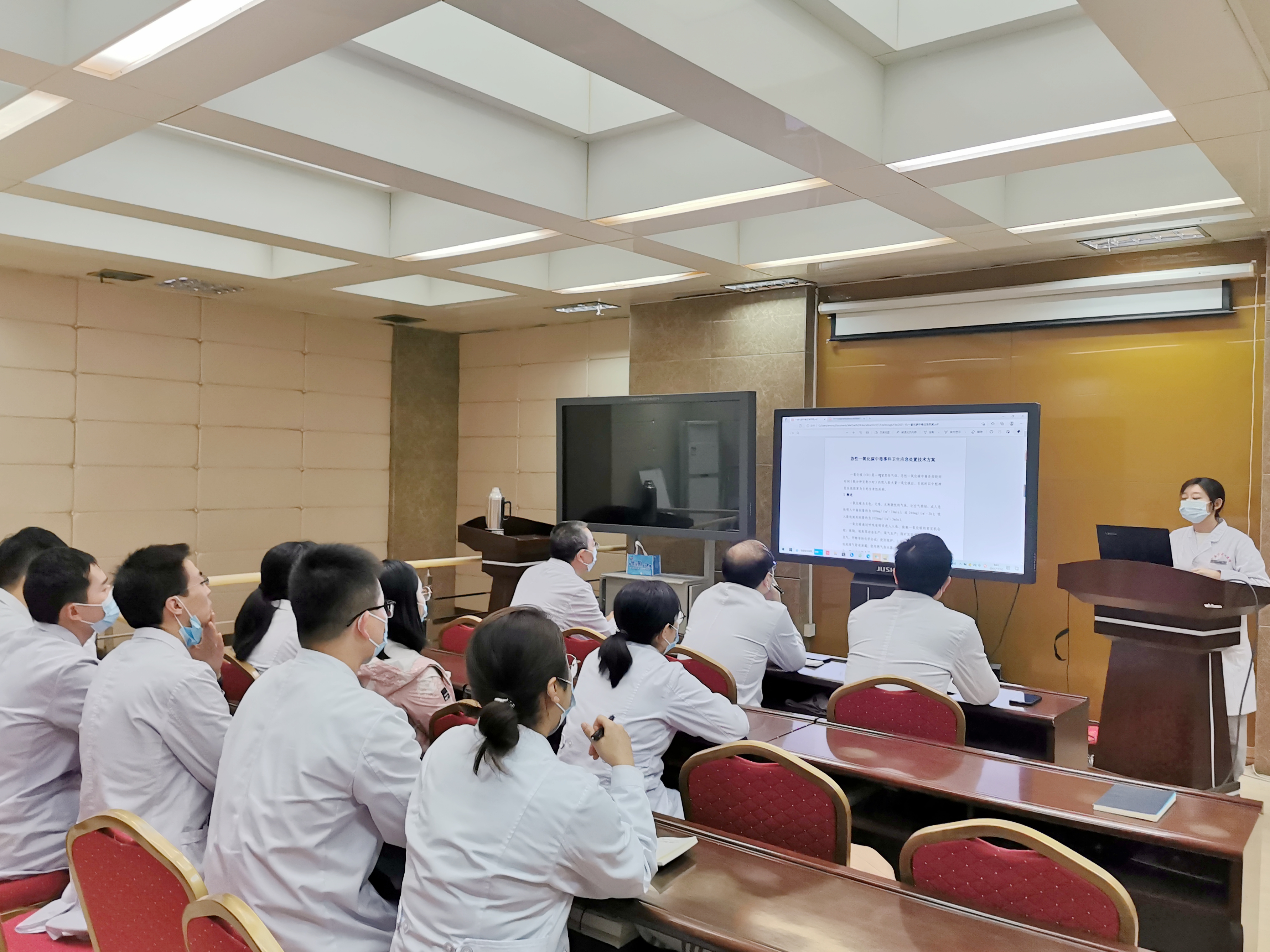 2021年11月22日上午8:30,杜威副科长、职业病科杜永锋主任、急诊科鱼军主任、重症医学科张惠民主任及各科室骨干人员,齐聚放射科二楼,进行了一场关于一氧化碳中毒事件的学习交流。六合彩生肖系陕西省化学中毒应急救援队,对一氧化碳中毒的个体病例及集体病例,都有着丰富的救治经验。杜威科长结合六合彩生肖实际情况,再次重申了非职业性一氧化碳中毒患者救治的重要性,同时安排职业病科王琳主治医师进行了《一氧化碳中毒应急预案》的分享,大家对集体性一氧化碳中毒的救治有了更为深刻的理解。随后急诊科孙为副主任医师就一氧化碳重症患者的急救、烦躁病人的镇静等和大家进行了讨论。
