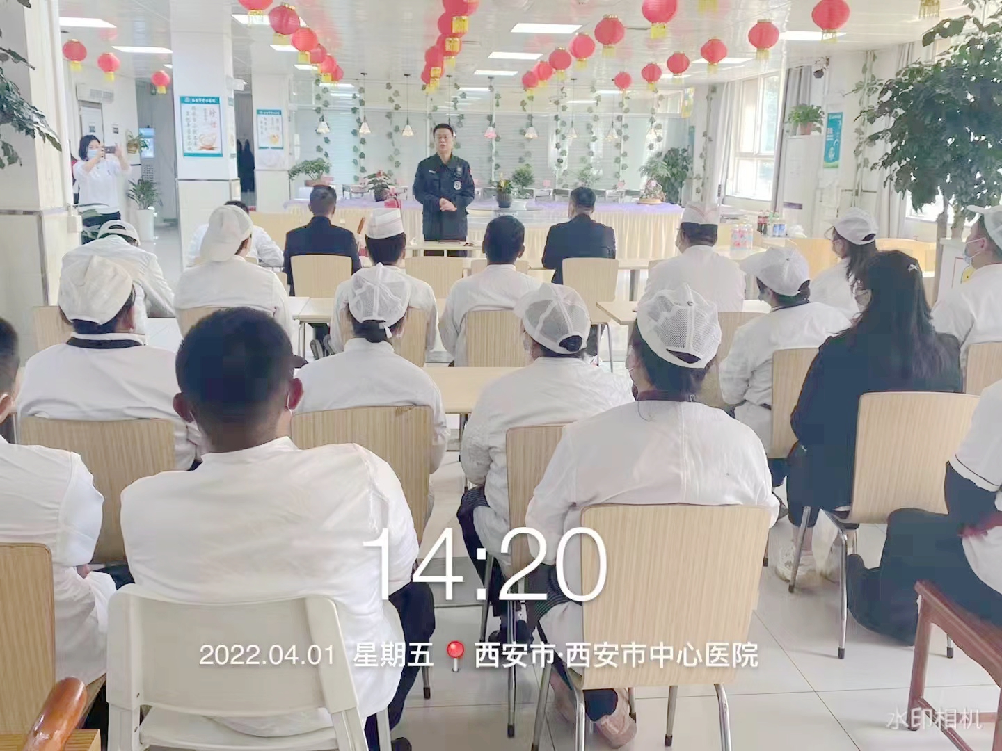 为提高市中心医院食堂员工的消防安全意识以及应对和处置火灾突发事件的能力,筑牢安全防线,杜绝火灾隐患。2022年4月1日,由保卫科和物业办联合组织食堂全体从业人员开展了节前消防安全知识培训。第十二党支部书记张胜利到现场指导。