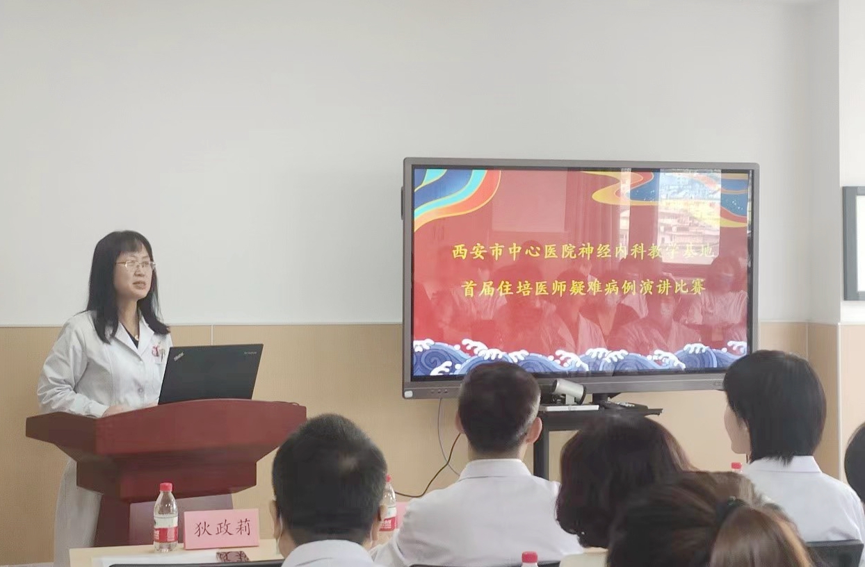 演讲比赛质控科李亚萍科长、教学办闫媛主任、陕西省著名癫痫专家张莉主任医师、神经内科狄政莉主任(基地主任)、王新来名誉主任、刘志勤副主任(教学主任)及二线张卫萍主任医师、由凤秋主任医师、雷辉主任医师、北车医院神经内科马迎主任、阎良区医院神经内科冯昕主任共同担任评委,由教学秘书贾晓涛主持。