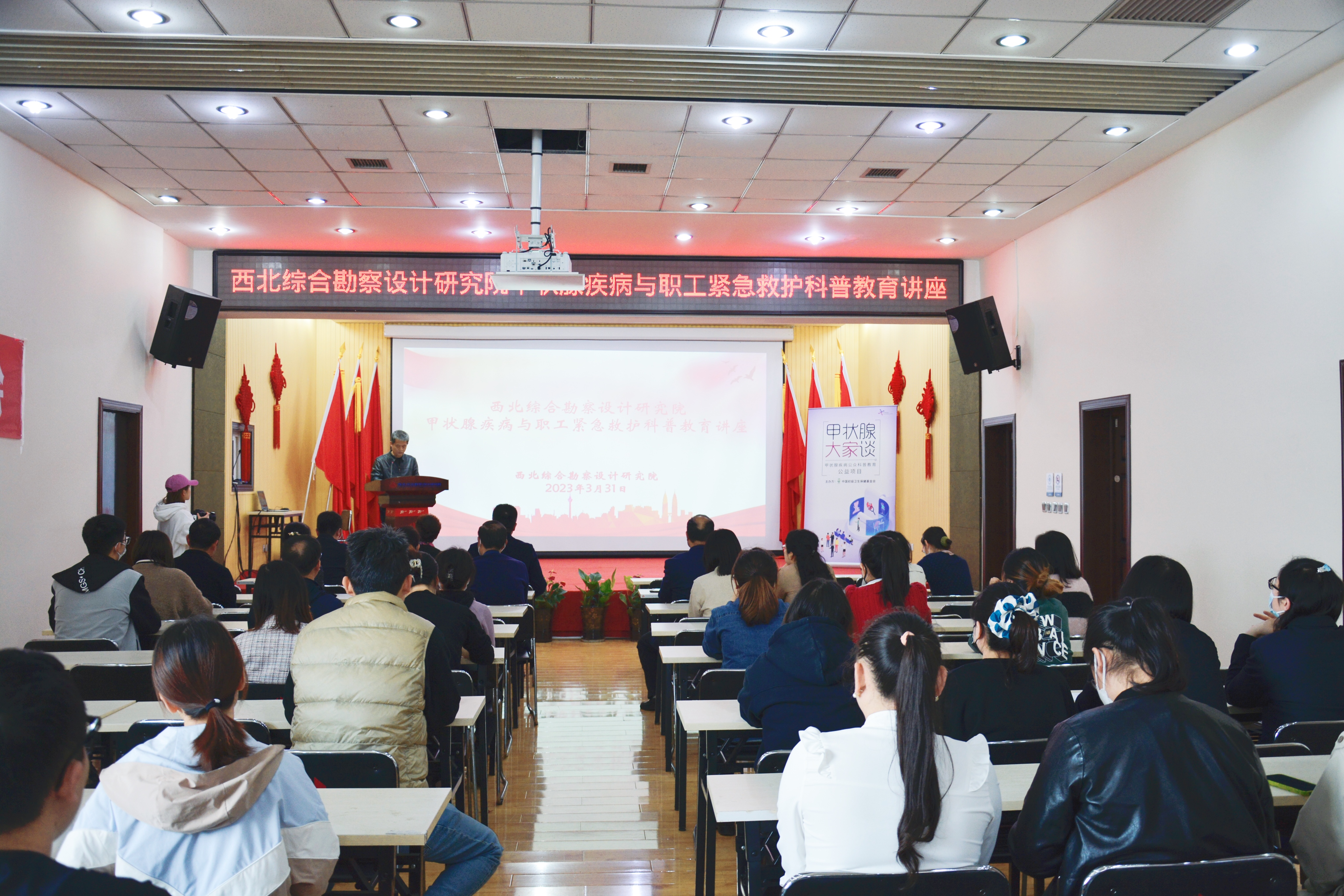 3月31日下午, 应西北综合勘探设计研究院的邀请,市中心医院副院长郭华带领六合彩生肖 内分泌科主任田竹芳主任医师、护士长吴烨、主治医生郝文庆,主管护师夏静等一行7人来到西北综合勘探设计研究院,为研究院工作人员进行急救知识的培训。培训会由西北综合勘探设计研究院委副书记、纪委书记、工会主席程新民书记主持。