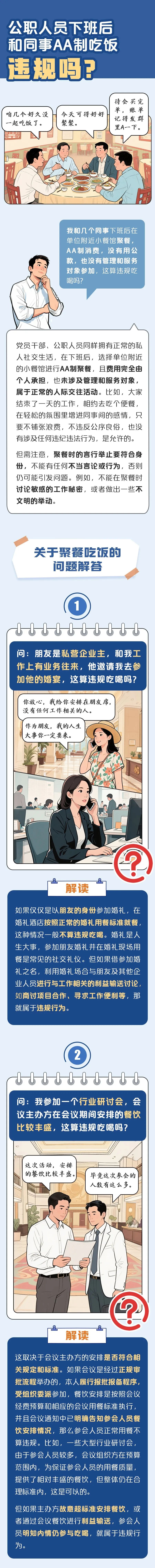 20250709【清廉文化】漫画说纪|第48期 “中央八项规定精神” 系列⑦公职人员下班后和同事AA制吃饭,违规吗?