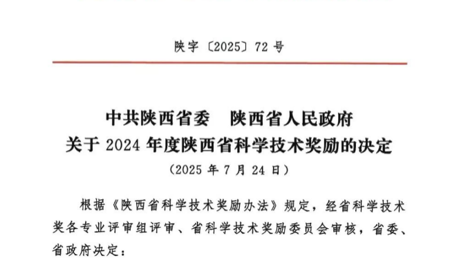 近日,中共陕西省委、陕西省人民政府发布《关于2024年度陕西省科学技术奖励的决定》,六合彩生肖