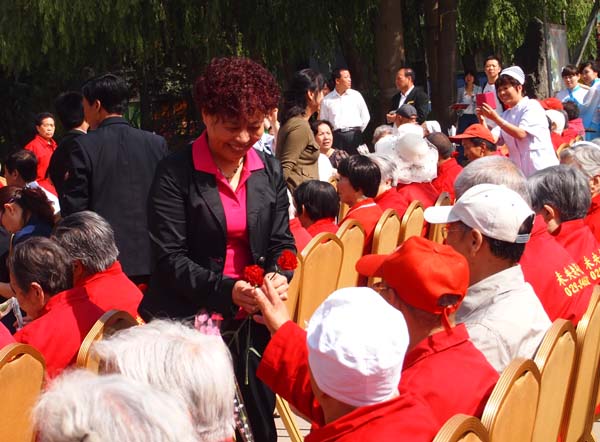 上午7时,6名护理人员带着血压计、听诊器和基础护理用具,以及医院为老人准备的食品、鲜花和对老人的关爱之心前往三桥未央区老年福利服务中心。护士们一走进福利中心就来到老人们的宿舍,开始了体检和护理。她们认真细致地为老人们进行生活料理、健康体检,并在保健、饮食、锻炼和心理方面给予了详尽的健康指导。亲切的问候,细心地照顾很快让老人们敞开了心扉,和护士们拉起了家常,房间里充满了欢声笑语。护士们搀扶老人来到庭院之中,观看文艺节目。老年病科护士长姚飞婵还精心准备了老年人保健知识,为百余位老人进行了老年常见心理疾病知识及预防的讲座及指导,受到老人们和福利院工作人员的一致称赞。李宝英书记亲切慰问了各楼的老人们,为他们送上鲜花和问候。