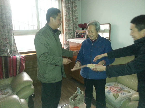 在马年新春佳节即将到来之际,院领导班子带领人事科、政工科同志将春节慰问品和慰问金,送到医院劳动模范、专家、离退休老同志及老干部、专家遗属和困难职工家中,为他们送去冬日的温暖和节日的问候。