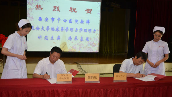 延安大学马勇副校长、研究生处杨亮才处长、医学院韩继明院长,西安市卫生局刘顺智局长、王红艳副局长,科教处吕喆处长,市中心医院领导班子成员和医院相关科室主任及护士长等参加了挂牌仪式。