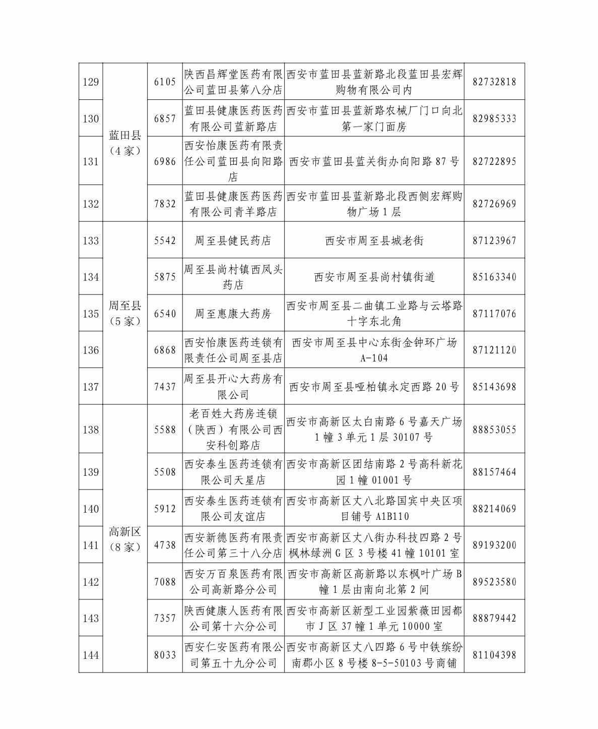 二、西安市基本医疗保险慢性病定点零售药店名单
