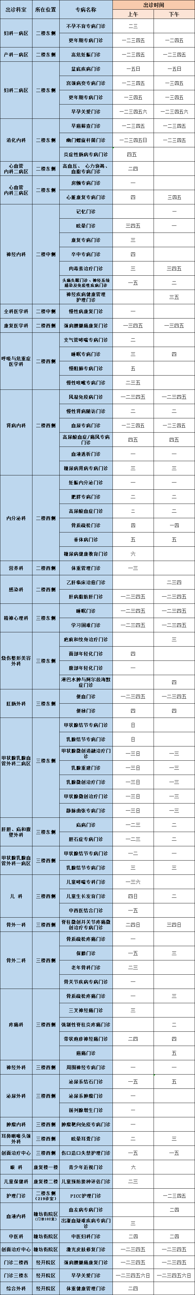 专家出诊表