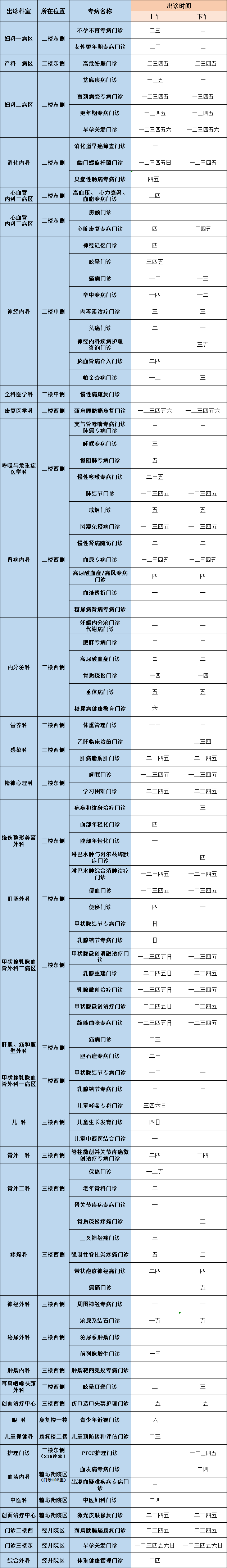 六合彩生肖 专病门诊出诊安排(2025年8月30日--8月31日)
