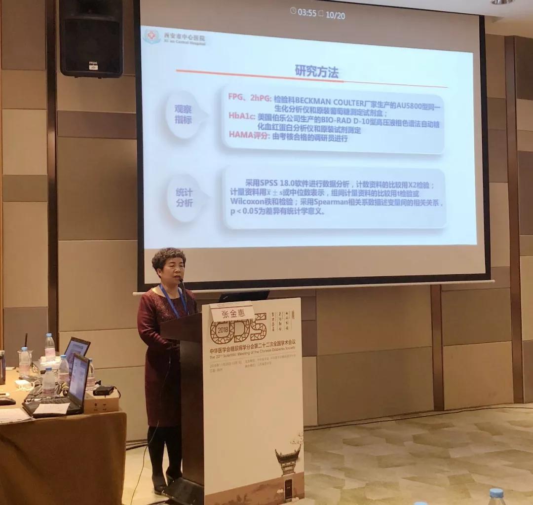 张金惠主任护师作为糖尿病护理领域的代表,在CDS大会上做了题为“有效降糖治疗对于2型糖尿病患者焦虑情绪的影响”的精彩发言,展示了其主持的陕西省科技攻关项目“糖尿病患者胰岛素治疗前后血糖与情绪的相关性研究”(项目编号:2014k11-03-04-08)的成果,提示科学管理糖尿病需做好糖尿病患者负性情绪的筛查与个体化心理辅导。
