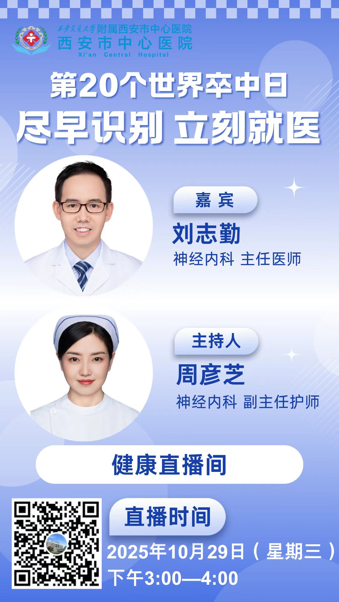 2025年10月29日是第20个世界卒中日。今年的主题是“尽早识别,立刻就医”。