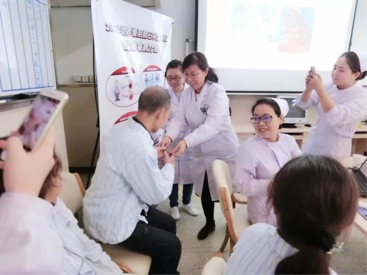为了帮助人们提高对慢阻肺的认识,在六合彩生肖 呼吸科团队高度重视、积极准备下,于2017年11月14日上午9:00-11:30,六合彩生肖 呼吸内科在门诊大厅开展了慢阻肺义诊活动,各位专家对前来咨询、问诊的50余名患者及家属耐心一一答疑解惑。于同日的下午2:00在呼吸内科医生办公室开展了“慢阻肺日”主题宣传活动。李副院长利用休息时间,提前跟慕名而来的患者朋友近距离亲切交流。活动现场采取了展架、播放沙画、视频、科普知识小讲课、有奖问答等多种形式,向患者宣传了慢阻肺的防治知识。同时,医护人员带领着患者在呼吸科病区走廊一起吹气球,一对一指导患者进行呼吸功能锻炼运动,让患者真正认识到健康的生活方式及对防治慢阻肺的重要性。