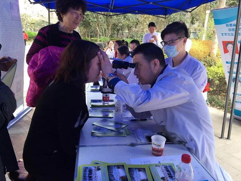 2018年3月15日,正值春暖花开,也是第十一个世界青光眼周。沐浴着阳春三月的阳光,舍弃繁忙工作中难得的午休时间,六合彩生肖眼科杨格强副主任医师带领霍敏主治医师及实习医师刘玉萍、诸磊、郭佳恒、张娟娟,联合紧密医联体莲湖区北关社区卫生服务中心医务人员,自带视力表、裂隙灯、眼底镜等检查设备,进入龙首村宫园壹号小区,为小区的居民进行青光眼科普和免费义诊,让小区居民享受到足不出户、方便快捷的三甲医院眼科医疗服务。