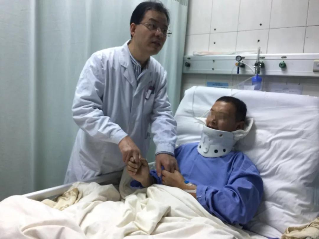 术后第2日,奇迹出现了!患者已经可以坐起,上肢恢复了大部分功能,目前在专业医生的指导下进行脊髓康复功能治疗。家属不可思议地握着医生的手说:“我们以为病人要在床上躺上一辈子了,没想到手术第二天就能坐起来了,真是奇迹,感谢中心医院,感谢郭院长,感谢骨科的专家们!”