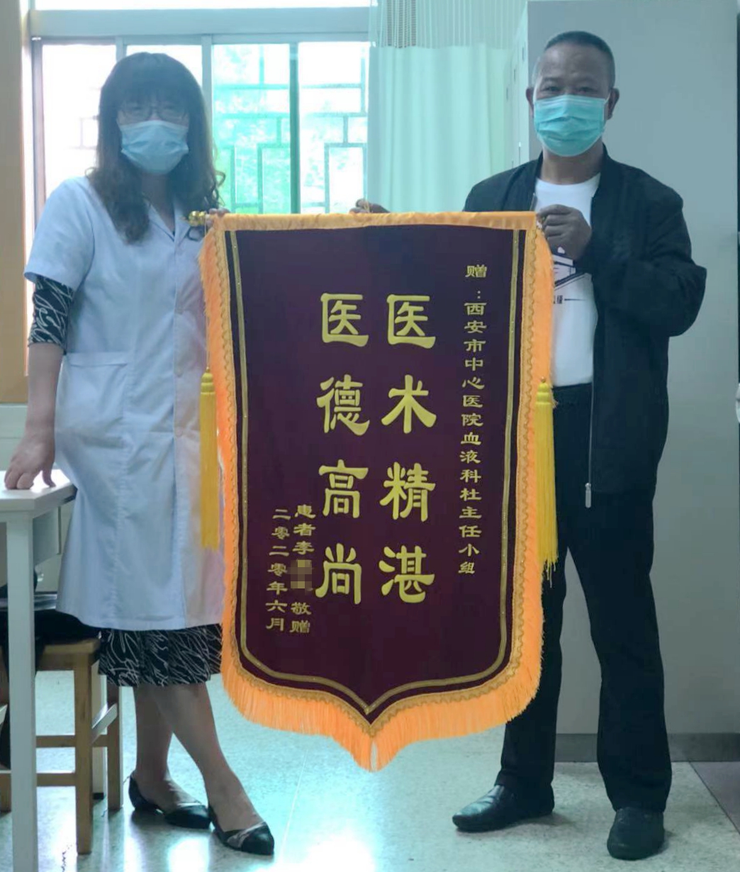 血研所宋艳萍主任感慨的说到:“能得到患者的认可和信任,我们全所医护人员都由衷的感到高兴,我们只是尽到作为一名医生的职责,在以后的工作中,我们会更加努力,努力解决临床中遇到的每一位疑难危重患者,为健康陕西、健康中国贡献中心人的一份力量。”