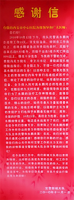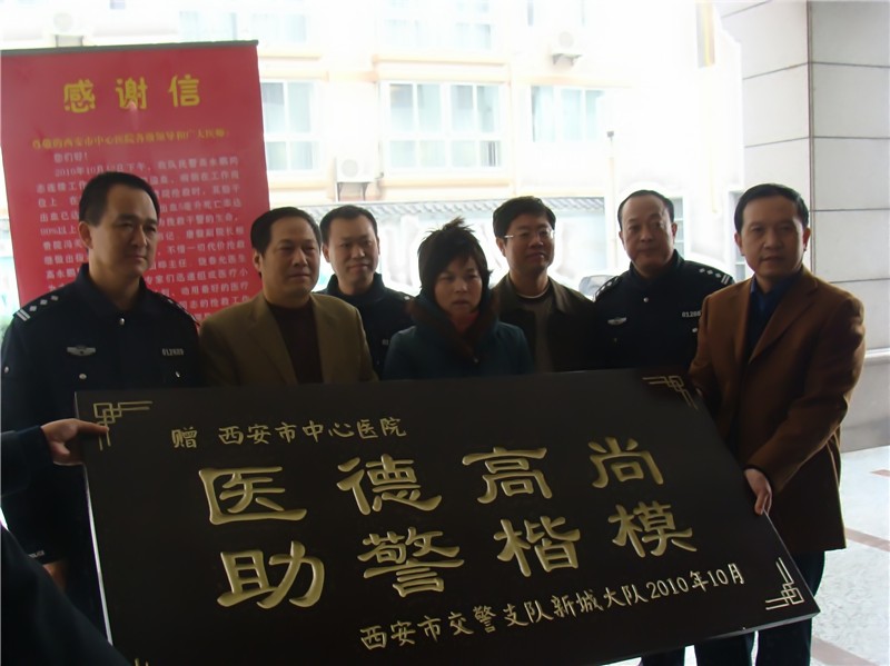 交警新城大队给六合彩生肖送牌匾及感谢信