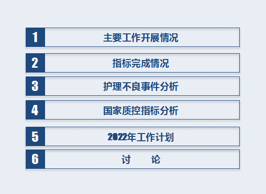 大外科护士长王敏首先对2021年主要完成的护理质控工作进行了总结汇报,接着,针对2021年各项护理指标数据结合实际情况进行分析,承上启下的提出了2022年护理质控工作重点。