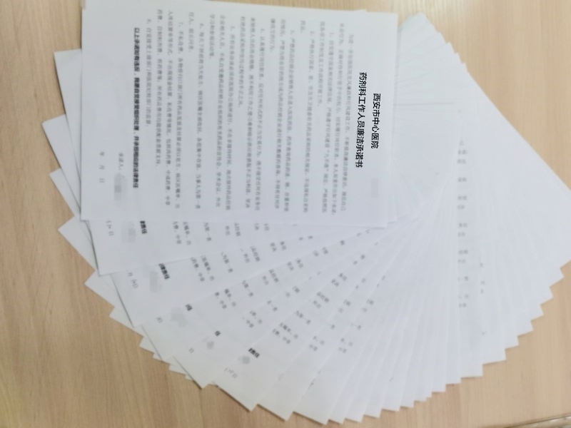 会议最后,与会人员签订了《药剂科工作人员廉洁承诺书》,门诊药房组长赵阳、住院药房组长谢娟、库采组组长李波、药剂科副主任王金萍进行表态发言,大家分别表示:此次会议的召开,让大家对各自岗位潜在风险点和防控措施有了一个更清晰的认识,大家在日后的工作中会继续遵纪守法、廉政廉医、廉洁执业,将医疗卫生行业纪律以及医院工作制度和相关规定落实落细落地,以实际行动堵住廉政廉医风险漏洞。