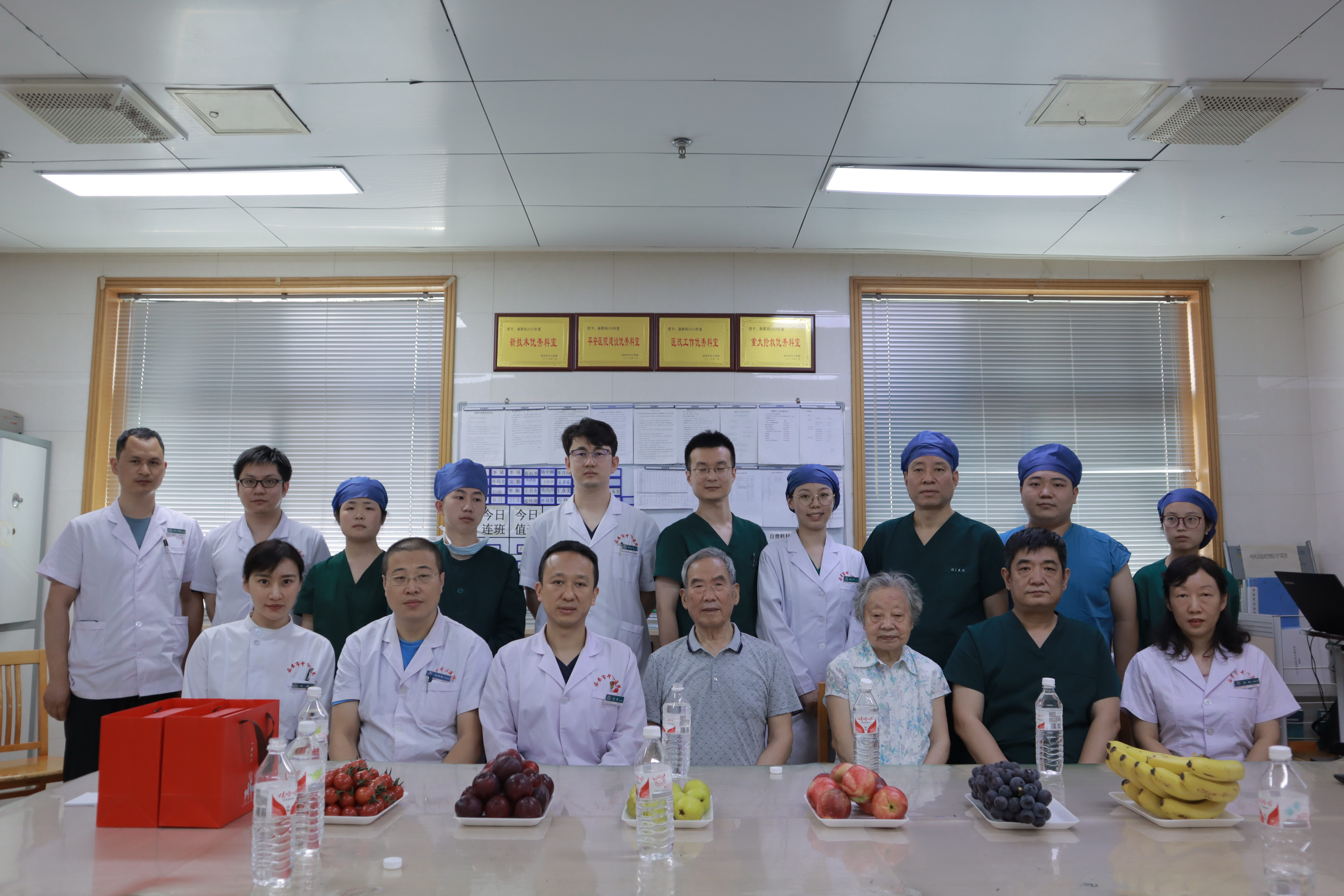 活动的第二项内容是带领老专家们参观手术室。在刘静护士长带领下,两位老专家对层流手术室、麻醉后复苏室分别进行了参观考察。时隔多年,两位耄耋老人再一次踏入这个自己曾经挥洒过青春和汗水的工作场所,看着手术室里美观、适用的手术设备,各种进口、高档的麻醉机和监护仪,无影灯下那些专注的眼神和忙碌的身影,这个熟悉而又陌生的环境让他们百感交集。李俊洲老师给年轻医生回忆起60年代有一年夏天手术室温度特别高,为了让胸外科田志中主任手术不出汗,手术室同志把冰袋放在布袋子里置于田主任背部,谁成想术后造成田主任背部局面冻伤。在场的同志们都为当年老专家工作环境的艰苦程度唏嘘不已。